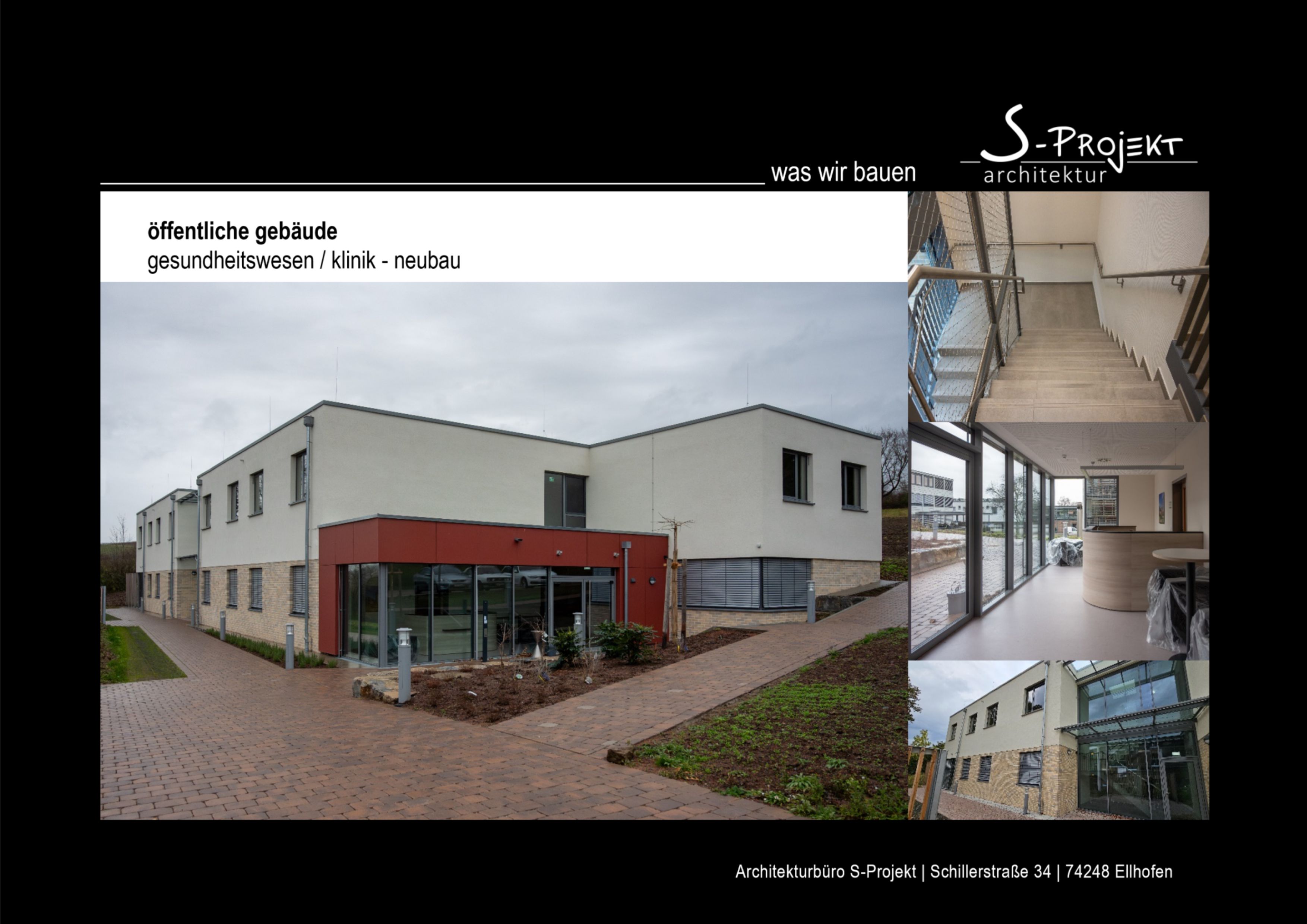 S-Projekt | architektur begleitet öffentliche und private Bauherren in unterschiedlichen Aufgabenfeldern – vom Gemeindehaus über Kindergärten bis hin zu Wohnquartieren und Klinikbauten.